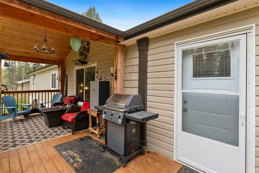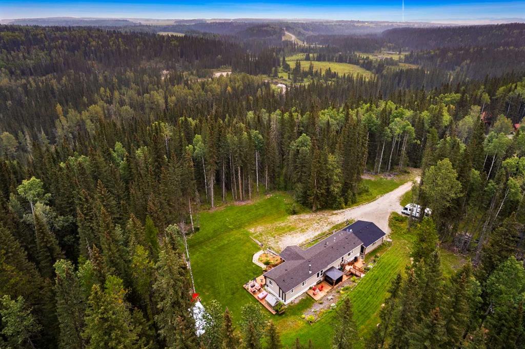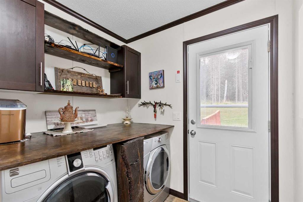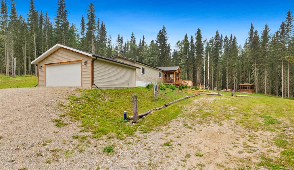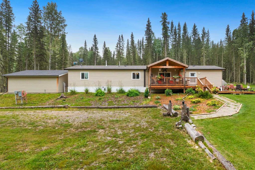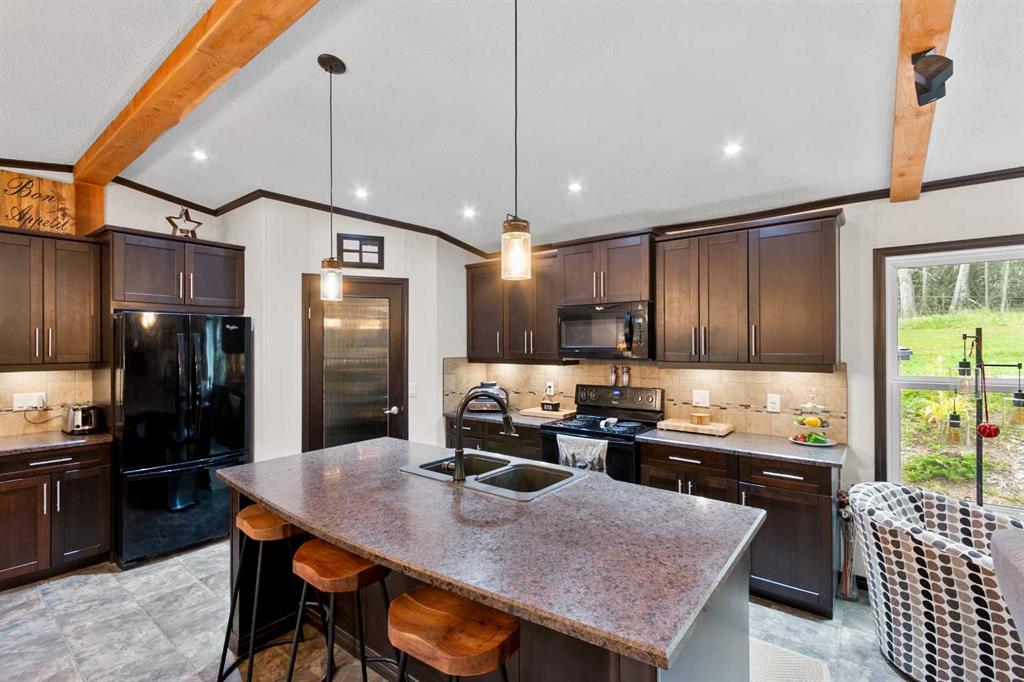 Set on a beautifully TREED SETTING, this 1,472 sq ft modular home offers the space and lifestyle acreage buyers crave. The OPEN-CONCEPT living area is warm and inviting, anchored by a WOOD BURNING FIREPLACE, exposed WOOD BEAMS & room to gather comfortably. A generous dining area flows into the functional kitchen featuring a center ISLAND, a COFFEE BAR and a large WALKTHROUGH PANTRY with convenient access to the laundry room and secondary entry, perfect for country living. The thoughtfully designed floor pla...
