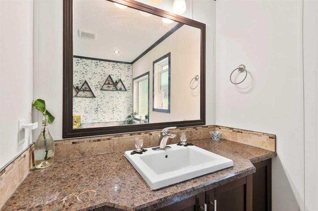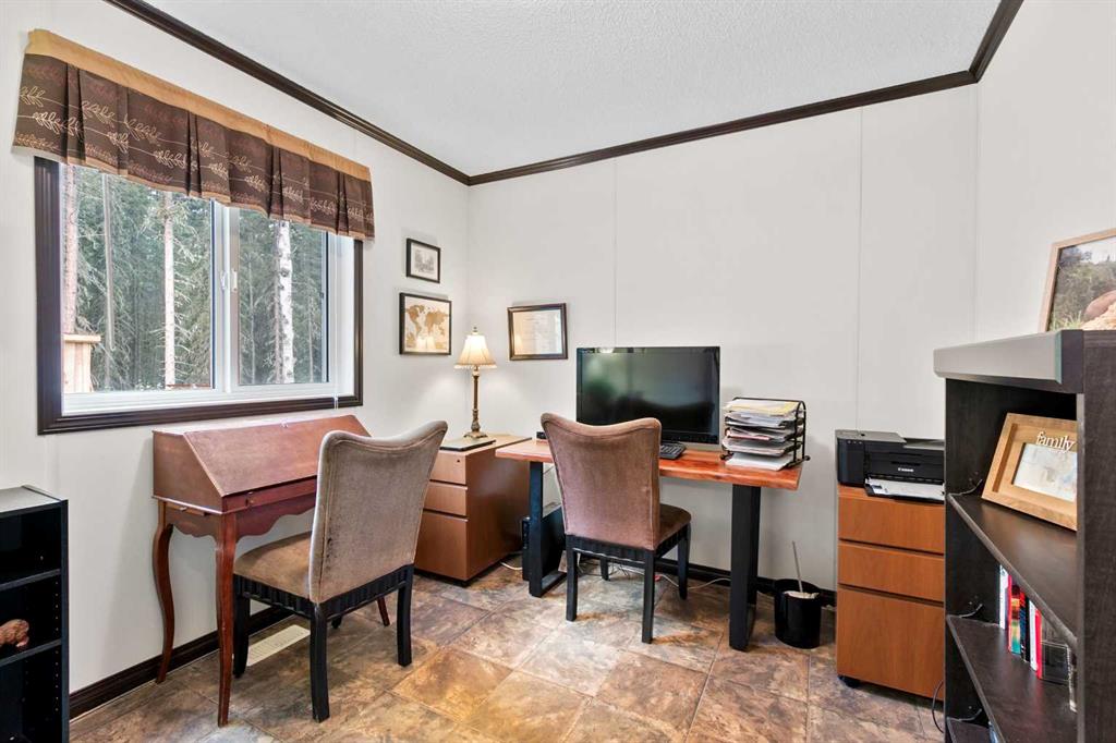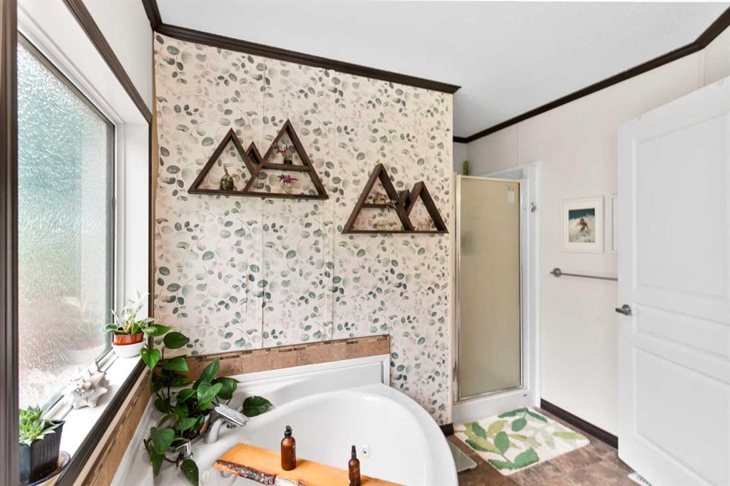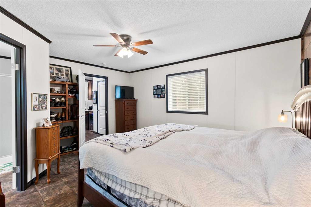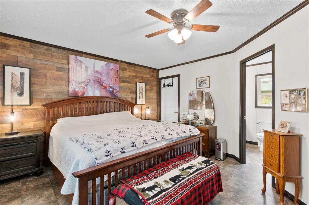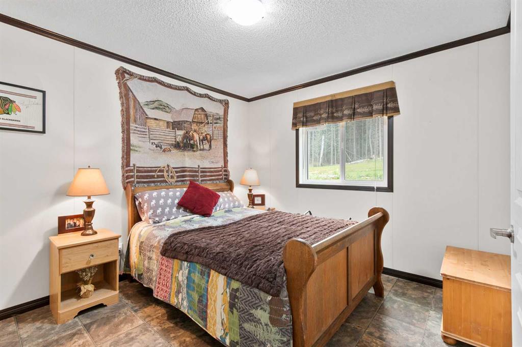 Set on a beautifully TREED SETTING, this 1,472 sq ft modular home offers the space and lifestyle acreage buyers crave. The OPEN-CONCEPT living area is warm and inviting, anchored by a WOOD BURNING FIREPLACE, exposed WOOD BEAMS & room to gather comfortably. A generous dining area flows into the functional kitchen featuring a center ISLAND, a COFFEE BAR and a large WALKTHROUGH PANTRY with convenient access to the laundry room and secondary entry, perfect for country living. The thoughtfully designed floor pla...