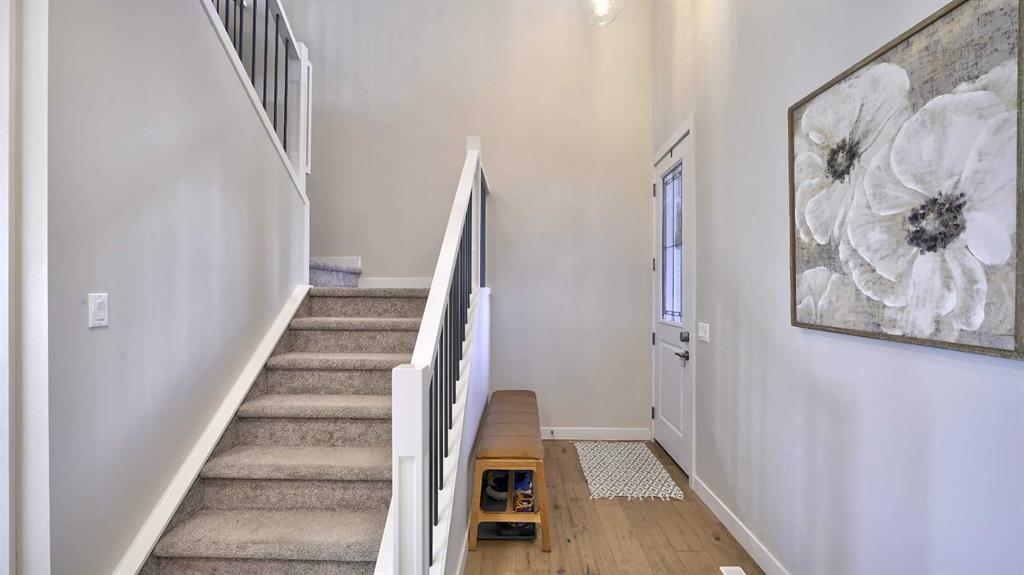 This beautifully upgraded 3-bedroom, 2.5 bathroom home offers over 2,000 square feet of living space, including a walkout basement with 9-foot ceilings ready for your future development. Perfectly positioned on a quiet street with no rear neighbours, the property backs onto the Bow River Valley, providing both privacy and stunning, unobstructed views. Designed for modern living, this home features 9-foot ceilings on both the main and lower levels, a vaulted foyer, engineered hardwood flooring, and oversize...