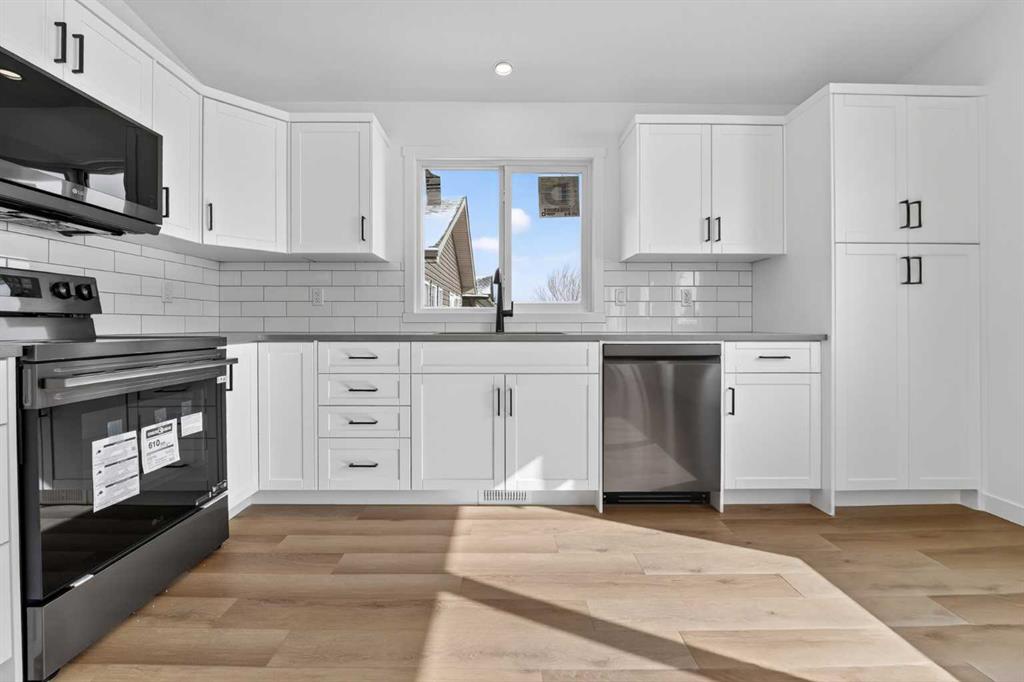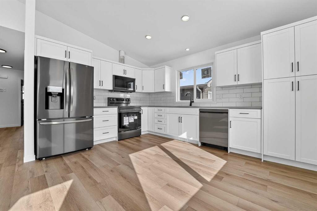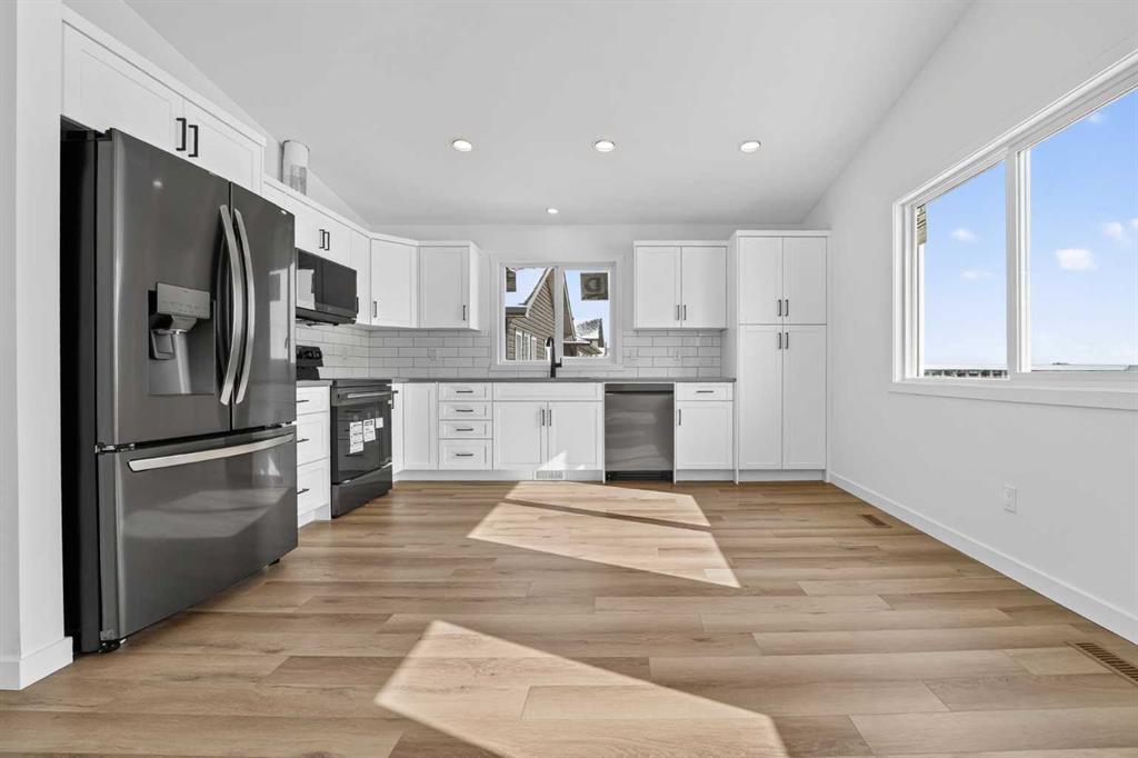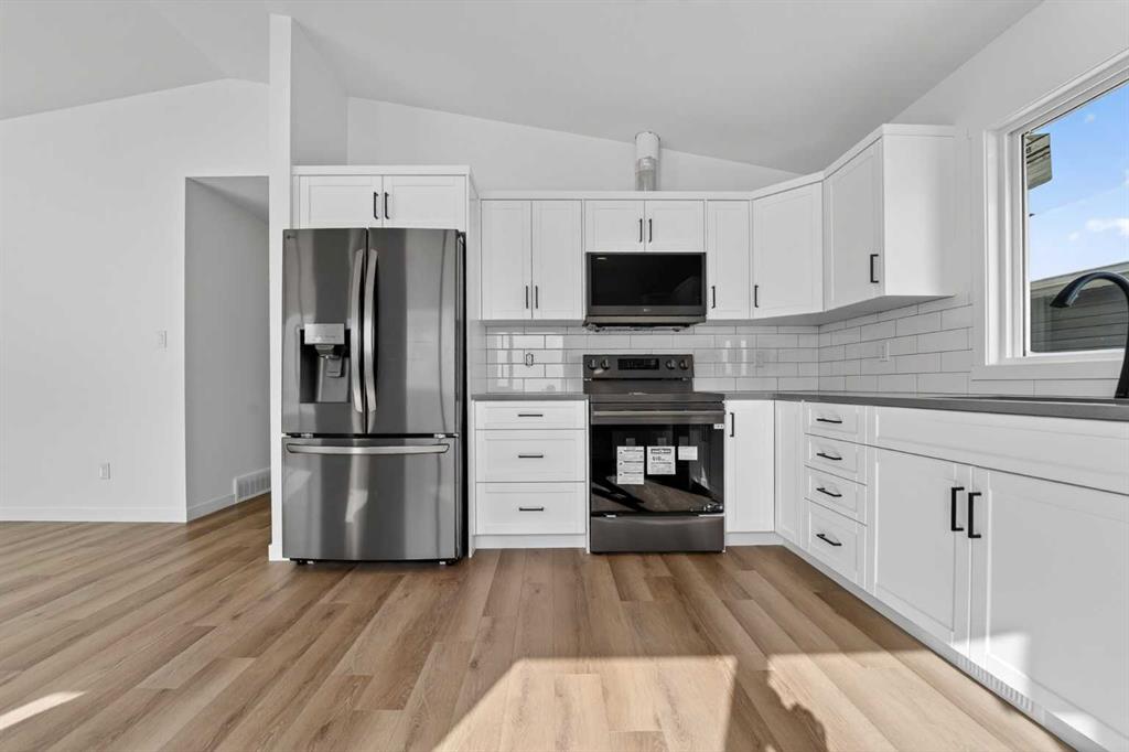 Located in Coalhurst, just minutes from Lethbridge, this brand new home offers a great opportunity for buyers looking to get into a newer property without pushing their budget too far. With a functional bi level layout, modern finishes, and a setting that backs onto a pond, this home combines everyday practicality with a well designed layout and modern finishes throughout. The main level features a bright and open layout where the kitchen, dining area, and living room all connect seamlessly. Vaulted ceiling...