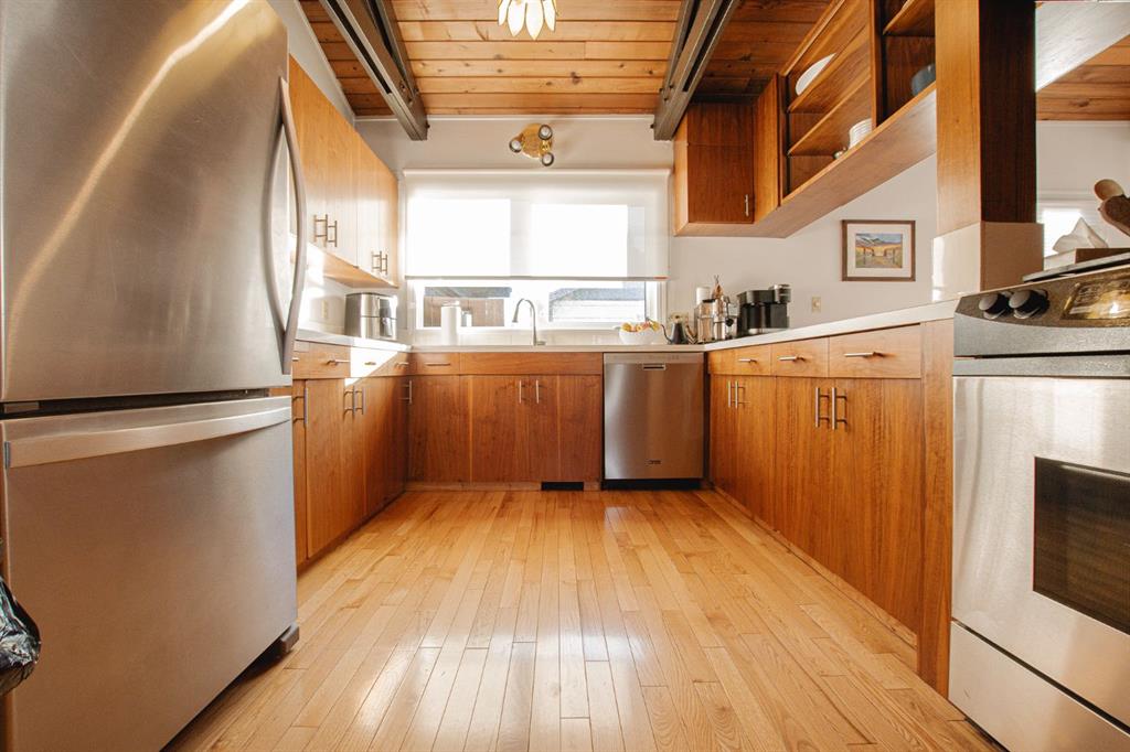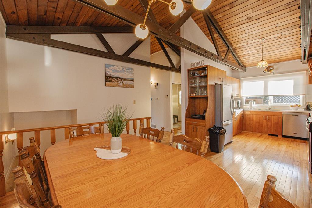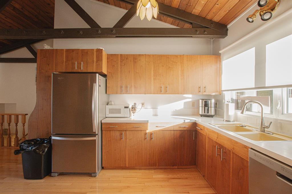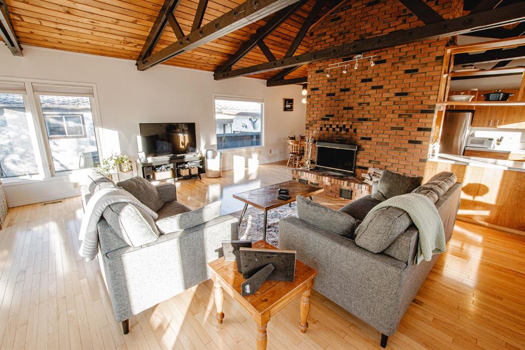 This charming bungalow is nestled in the mature VLA neighbourhood, full of character and warmth. Offering 3 bedrooms, 2 bathrooms and featuring an open floor plan centered around a stunning wood-burning fireplace with a beautiful brick surround. Exposed ceiling beams and large windows flood the space with natural light, creating a bright and welcoming atmosphere. The spacious kitchen is perfect for entertaining, complete with stainless steel appliances, plenty of cupboard & counter space open to the living ...